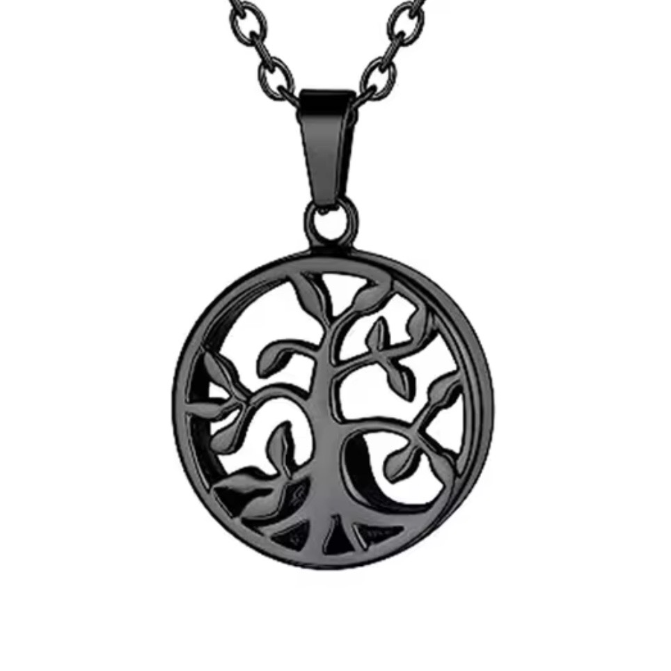 Deze prachtige edelstalen hanger levensboom heeft een doorsnee van 2,3 cm en wordt geleverd met een anker collier van 47 cm. De hanger weegt circa. 9 gram. U heeft de keuze uit drie kleuren (zilver/goud en zwart).