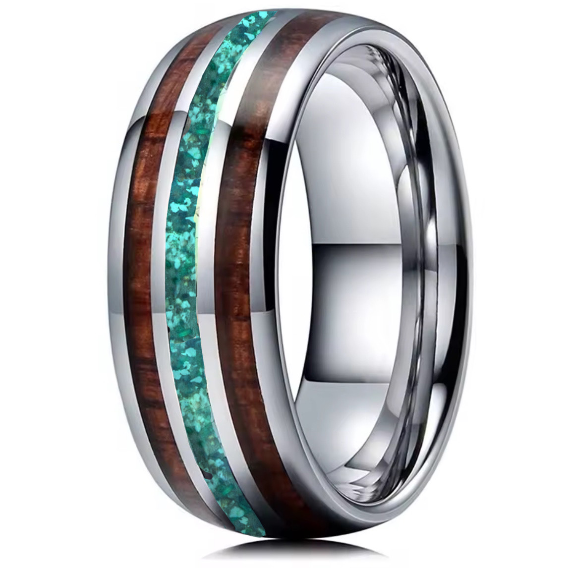 Deze stoere asring acacia is vervaardigd uit tungsten carbide en ingelegd met twee prachtig biezen van acaciahout. De ring is 8 mm breed en verkrijgbaar in verschillende maten en kleuren.