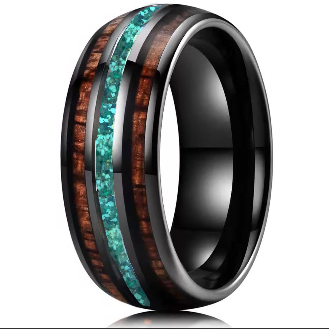 Onze asring  acacia is vervaardigd uit tungsten carbide (wolfraam), een zwaar, krast-vast, anti allergisch metaal.
