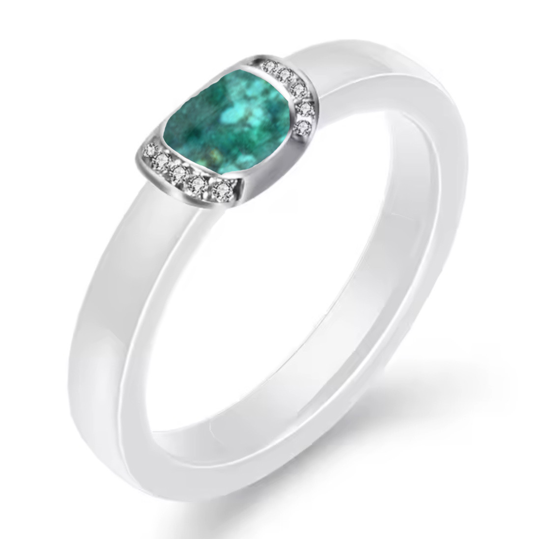 De toevoeging van diamond dust geeft een klein glimmertje aan het eindresultaat.De ring is verkrijgbaar in het zwart en wit