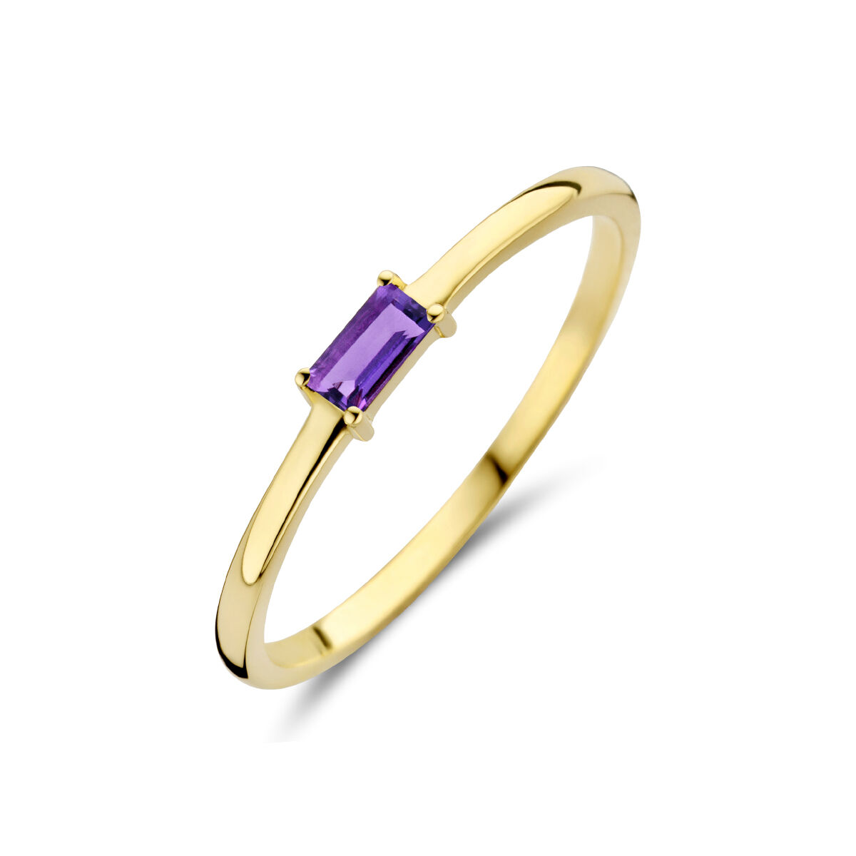 Deze 14K geel gouden ring is uitgevoerd met de geboortesteen van de maand.