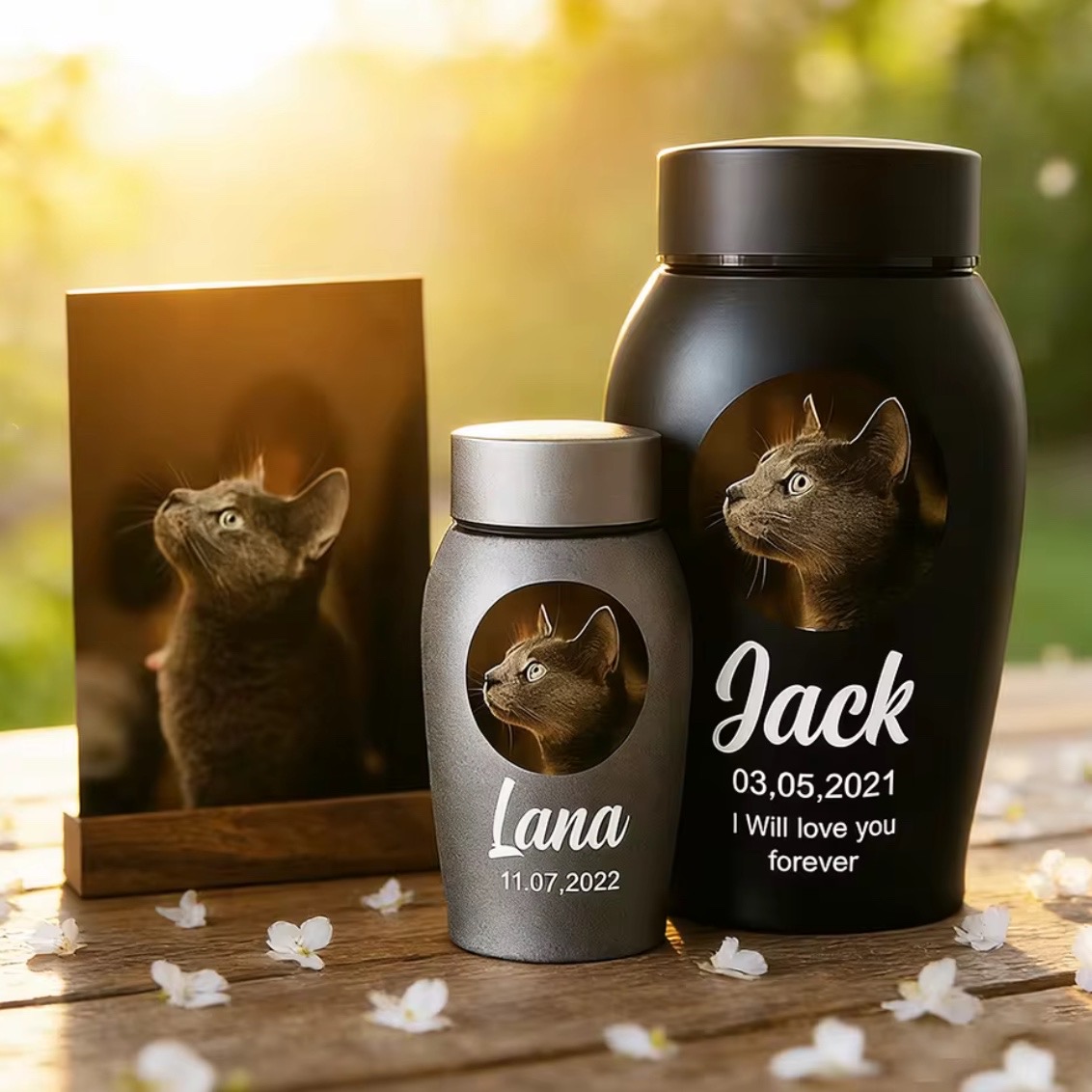 Met de Mini urn photo heeft een mooi stukje design in huis waarmee u uw dierbare huisdier een mooi plekje kunt geven.