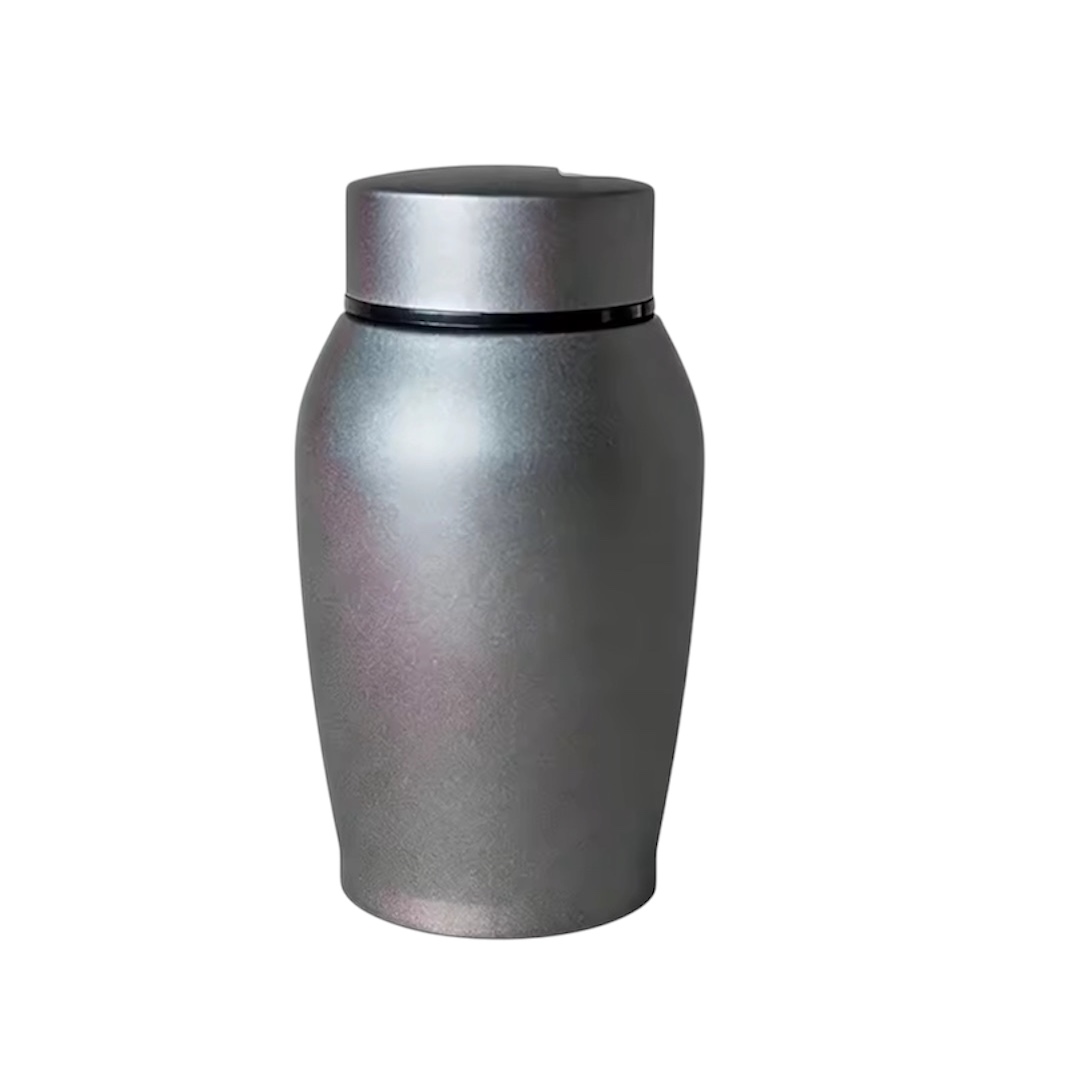 De mini urn is verkrijgbaar in twee kleuren (zilver en zwart).