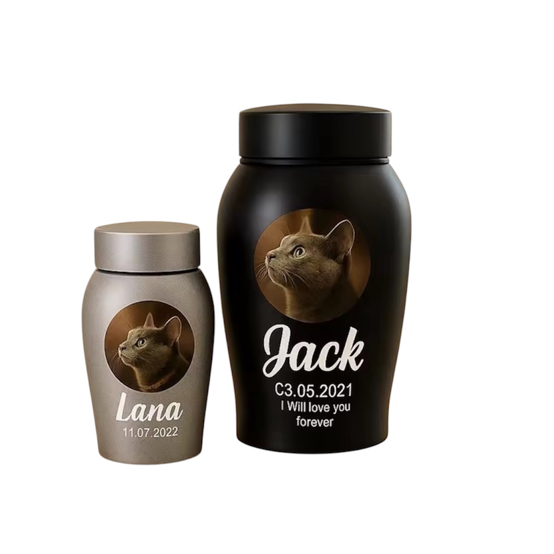 De urn is verkrijgbaar in twee formaten. 13,5 x 6 cm of 18 x 8,5 cm.