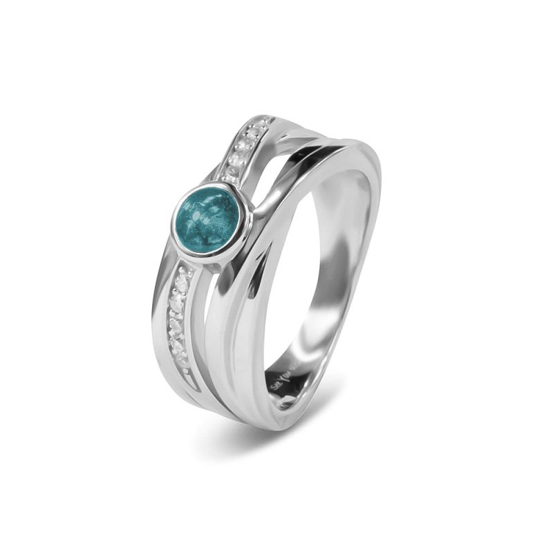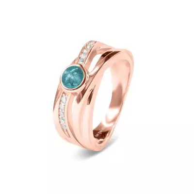 Deze ring wordt zichtbaar aan de bovenkant gevuld met as van uw dierbare. Wij verwerken de as met een speciale hars met eventueel toevoeging van een kleurpigment. Een toevoeging van diamond dust levert een glimmertje op in het eindresultaat.