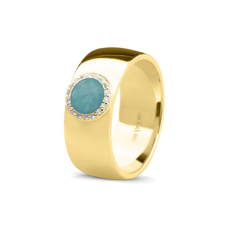 Deze ring wordt zichtbaar aan de bovenkant gevuld met as van uw dierbare. Wij verwerken de as met een speciale hars met eventueel toevoeging van een kleurpigment. Een toevoeging van diamond dust levert een glimmertje op in het eindresultaat.