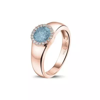 Deze ring wordt zichtbaar aan de bovenkant gevuld met as van uw dierbare. Wij verwerken de as met een speciale hars met eventueel toevoeging van een kleurpigment. Een toevoeging van diamond dust levert een glimmertje op in het eindresultaat.