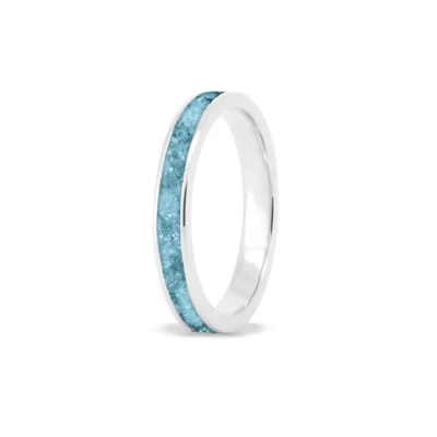 Deze ring wordt zichtbaar aan de bovenkant gevuld met as van uw dierbare. Wij verwerken de as met een speciale hars met eventueel toevoeging van een kleurpigment. Een toevoeging van diamond dust levert een glimmertje op in het eindresultaat.